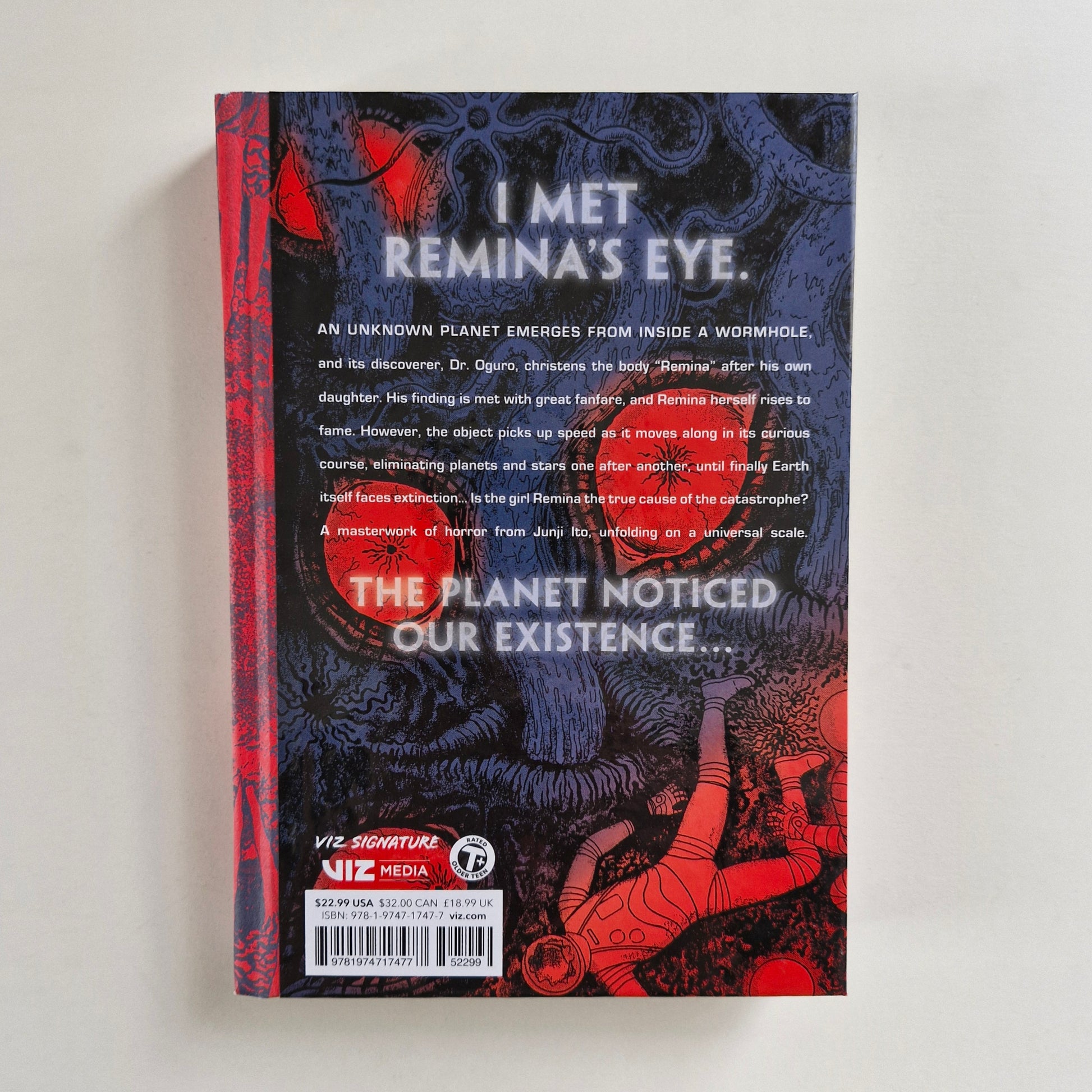 Story and art by Junji Ito. An unknown planet emerges from inside a wormhole, and its discoverer, Dr. Oguro, christens the celestial body "Remina" after his own daughter. His finding is met with great fanfare, and Remina herself rises to fame. However, the planet picks up speed as it moves along in its curious orbit, eliminating planets and stars one after another until finally Earth itself faces extinction...
