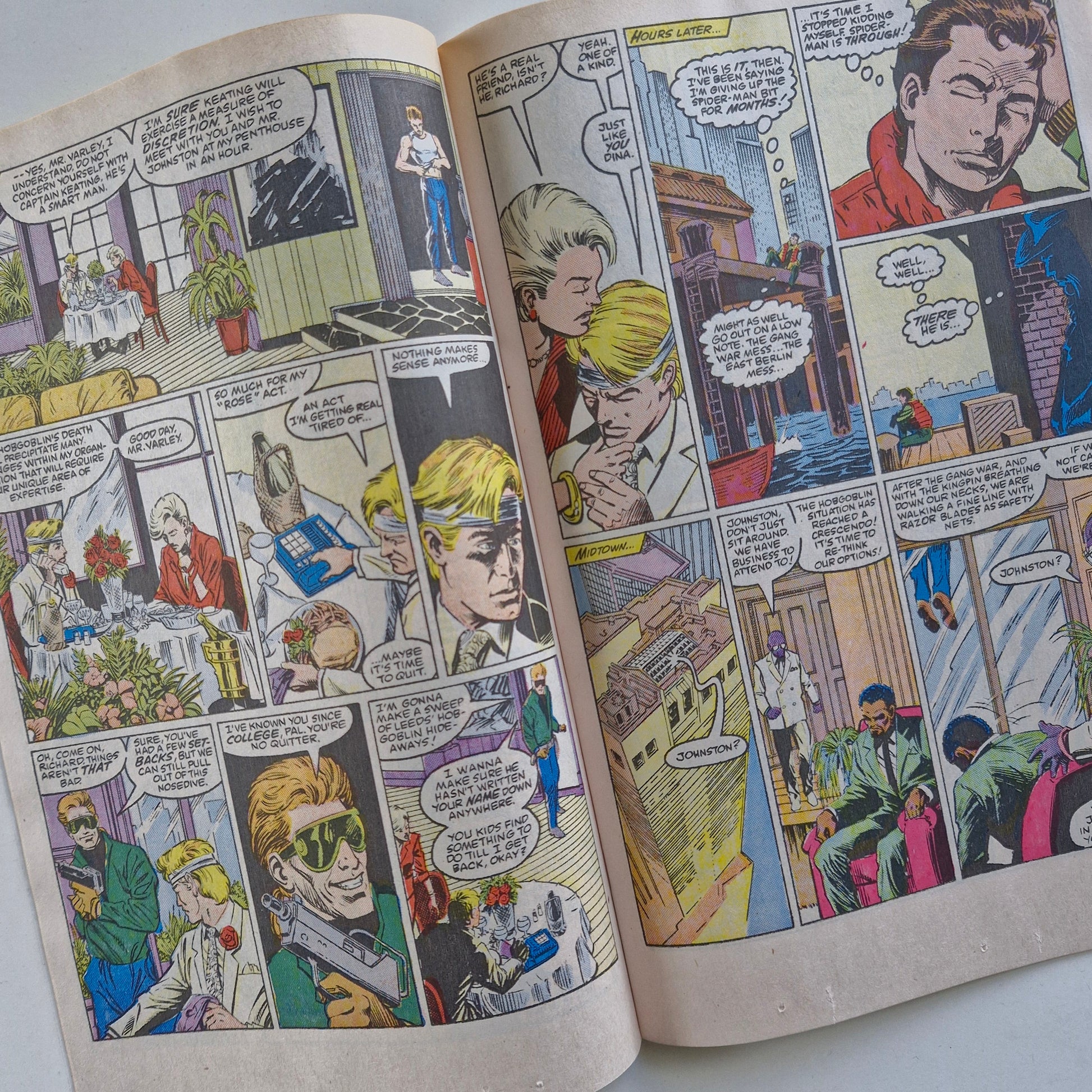 Guest-starring Wolverine. Story by Jim Owsley. Art by Steve Geiger and Art Nichols. The story opens at the funeral of Ned Leeds (aka the Hobgoblin). Peter Parker's life is in turmoil as he contemplates giving up being Spider-Man. Wolverine finds Peter and tries to convince him to do otherwise.