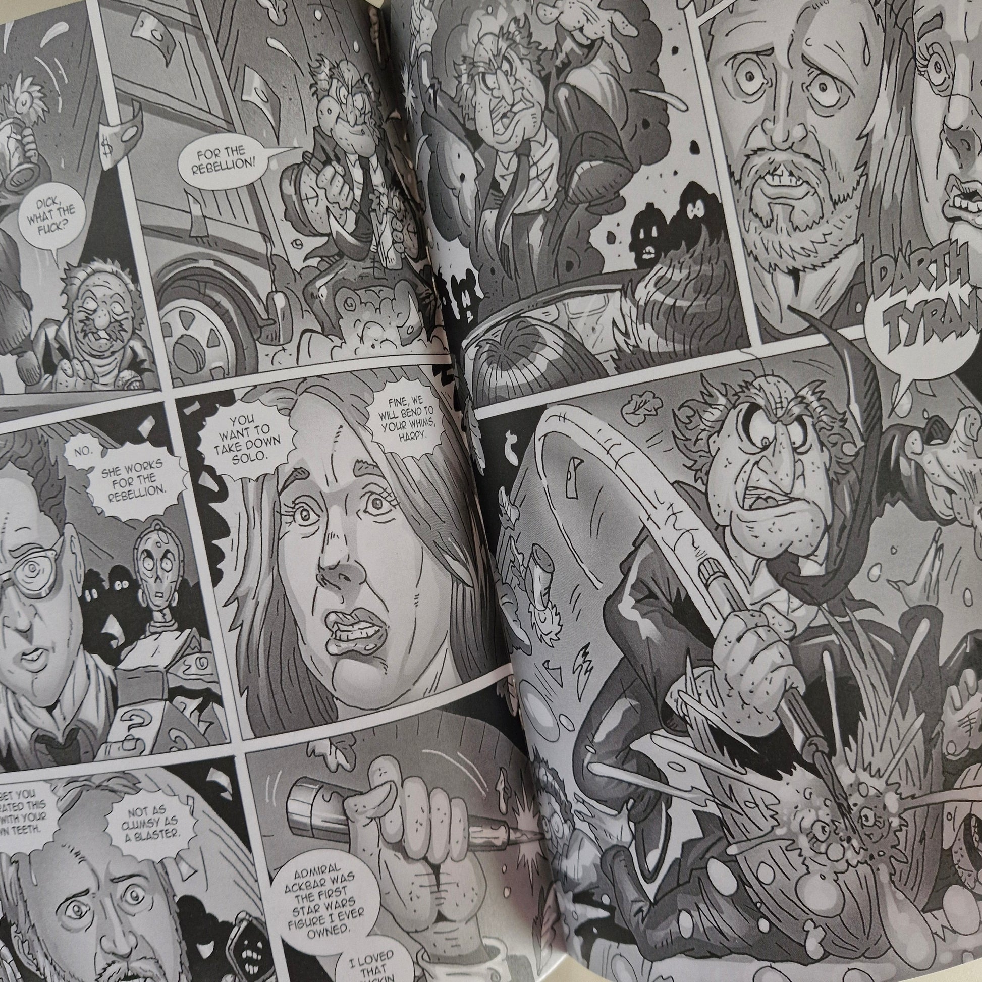 Cover by Sajad Shah. Story by Farrell Kellener. Celebrate the fusion of Cheers and Mars in the launch of a bold new series from Faro's Lounge. Explore life after death through Zeldara, the tri-breasted daughter of Venus, Goddess of Love, and owner of ZELDARA's DEMON DEPOT—a realm where souls receive their afterlife roles to attain redemption. This 24-page full-color issue features a special guest appearance by Star Wars CEO Kathleen Fuckin Kennedy